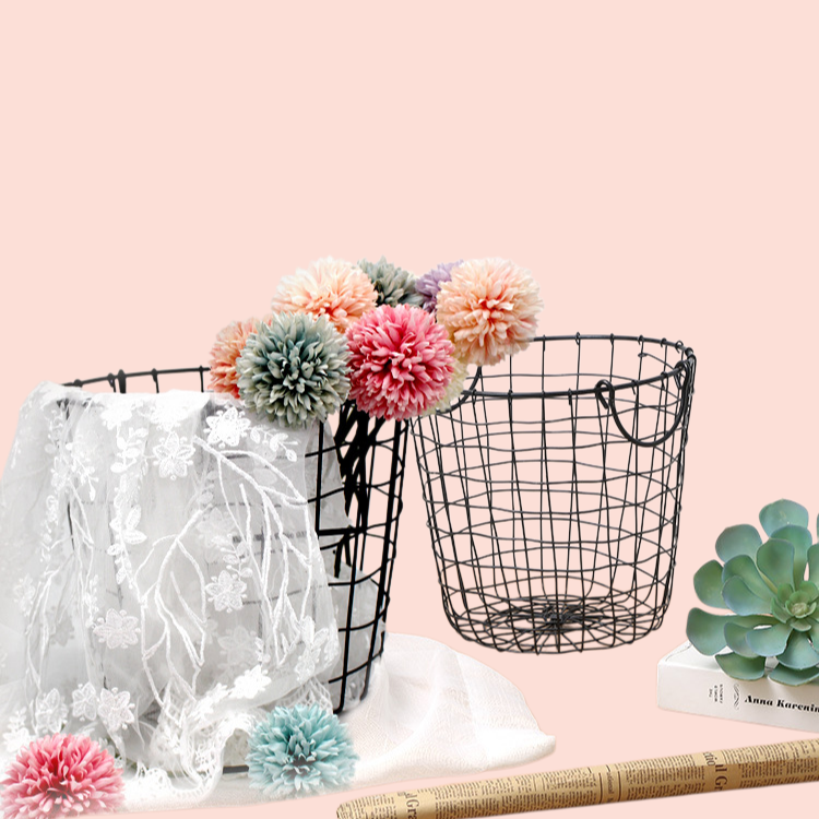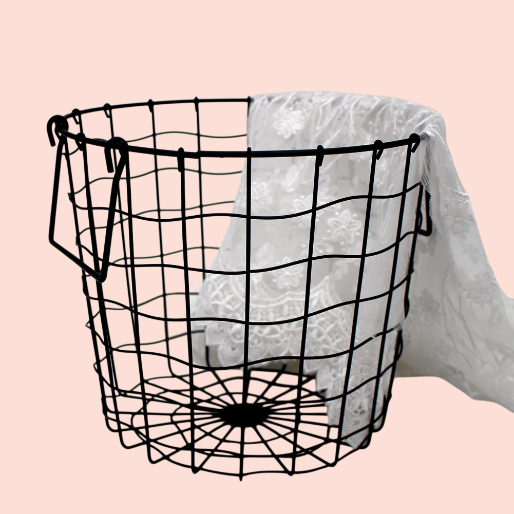 Nordic style wrought iron storage basket, sturdy construction, minimalist design, space-saving, rust-resistant, versatile for kitchen, bathroom, or living room organization.